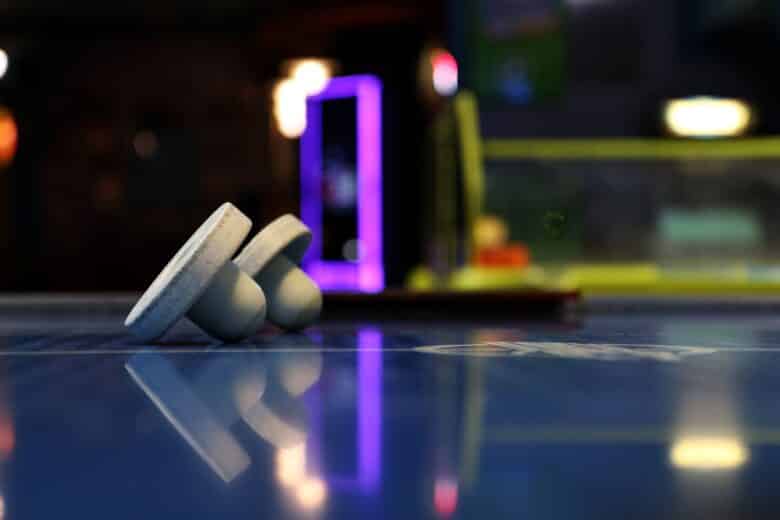 A two-player competition, this game consists of discs that lightly float on air that’s blown out of the goals. This disc speeds across the table, bouncing off walls, zipping back and forth until finally, a player is able to score a goal. The first player to six wins the game, and the title of Arcade King, until the next match.