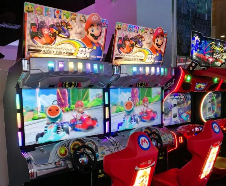 Mario Kart Arcade brings the fun of the Mario Kart series to life with immersive arcade elements. This game is a sit-down car-like version of the console classic. Characters get to steer with a true-to-life steering wheel and can accelerate and brake using pedals, rather than controller buttons.