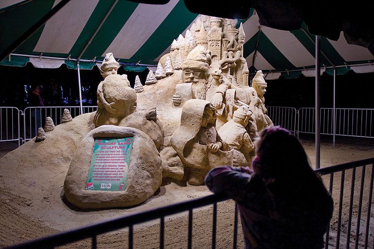 You can drive or walk the enchanted light trail and watch Christmas trees “dance” to the music of the Trans-Siberian Orchestra. When you’re done feasting on roasted marshmallows or a chocolatey treat from Santa’s Sweet Shoppe, you can also pick up presents from three different gift shops. Don’t forget to check out the 50-ton holiday sand sculpture before you go.