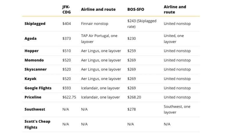 Most of the sites we evaluated allow users to book tickets directly on their platform or the airline’s website. Momondo only lets you book tickets through online ticketing agencies, known as OTAs. If you find an ideal ticket price, you’ll have to complete the sale on a website that may be unfamiliar to you, like Flights Mojo, Globehunters or TravelMint. Since you’re booking with an OTA rather than directly with the airline, you may face increased fees if you try to change or cancel your flight.