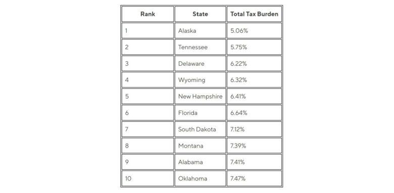 States with the Lowest Tax Burden
