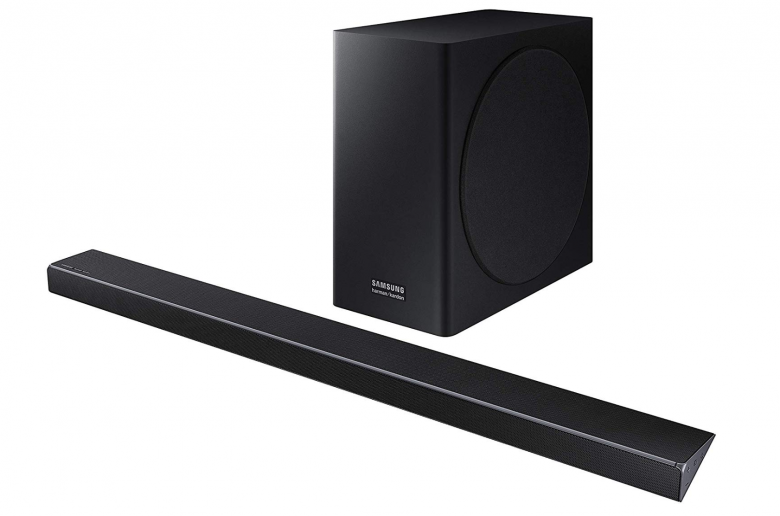 A solid option here — and recently reduced at Amazon from $800 to $579 — is the Samsung Harman Kardon HW-Q70R. This is a sound bar without rear speakers, but creates 3D sound compatible with Dolby Atmos and DTS: X using its seven speakers, two of which fire upwards to bounce sound off the ceiling.