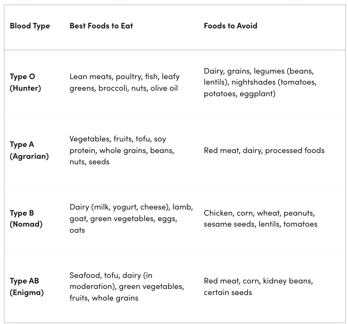 But it does mean you shouldn’t expect magical results just because your plate “matches” your blood type. And it’s possible that some of the foods to avoid for your blood type are nutritious, and there’s more potential harm in ditching them.