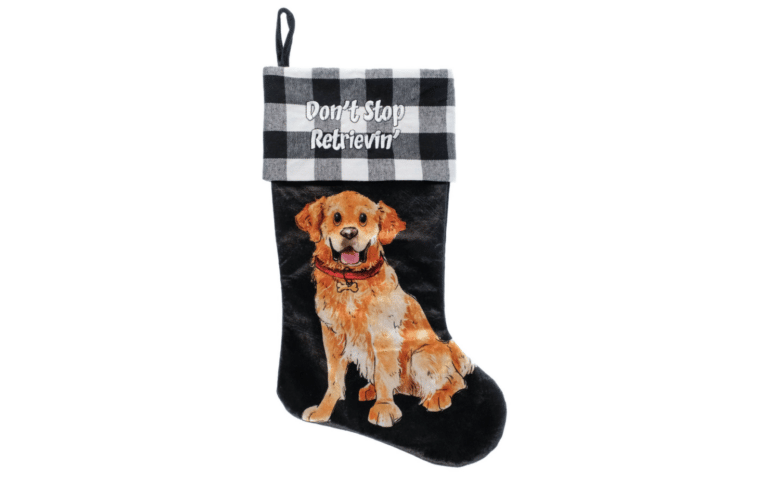 The American Society for the Prevention of Cruelty to Animals’ black and white velour stocking featuring a golden retriever is just $8.98 at Walmart. At 20 inches, this stocking will hold quite a number of treats. Plus it has a funny “Don’t Stop Retrievin’” phrase that’s clearly a play on a song by the band Journey.