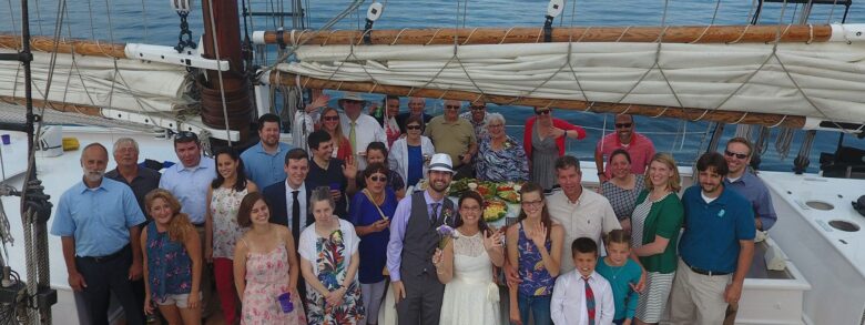 Are you a bride and groom looking for somewhere completely different to exchange vows, celebrate an engagement, or commemorate an anniversary? How about an out-of-the-ordinary location for a rehearsal dinner party? Want to get away with your sweetheart for a romantic evening? Give The Schooner Lannon a call and they will help you to organize a memorable sail. The Schooner Lannon will offer couples an unforgettable experience. What could be more romantic than sailing the serene waters along Gloucester’s magnificent coastline while the sun sets in the background? Weekend charter rates start at $750 an hour with a 2.5-hour minimum.