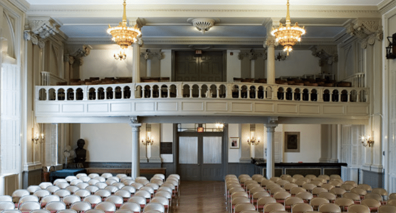 The German Society of Pennsylvania has several large and unique historic spaces available to rent for private functions such as weddings, corporate events, and for photography, film, or video. The building exists in two parts. The first part is a historic 1830s townhouse purchased by the Society for offices and classrooms in 1887. The second, which is connected to the first, is a Hall and Library built in 1888 on Spring Garden Street. The German Society is a building with character and historical significance. In addition to it being a unique place to have your event, the income generated from your rental is used to help us (a nonprofit organization) fund our mission. The larger room rentals start at $1,500.
