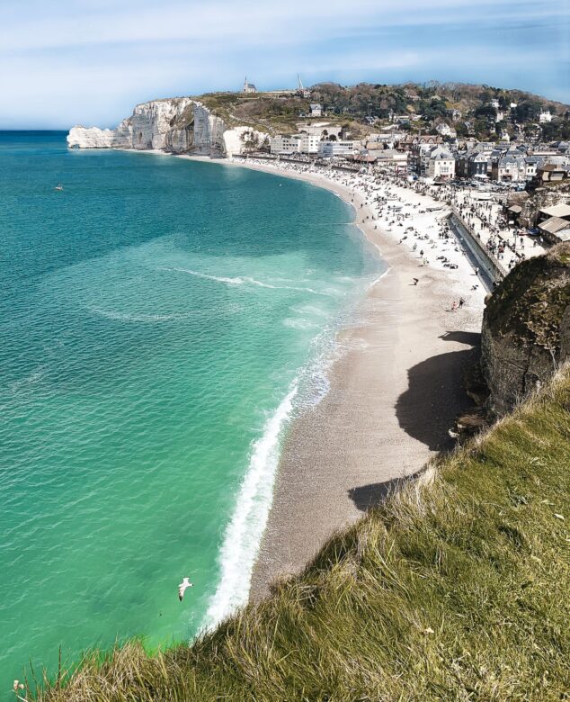 If you are seeking a stunning coastal town France, Étretat in Normandy (just 20 km north of Le Havre) is certainly a great choice as it has a large sandy beach and dramatic white white stone cliffs. The cliffs stretch for four kilometers and have striking rock formations that have been carved out of the rock by the wind and rain. There are three natural sea arches including  Porte d’Aval arch and L’Aiguille (meaning ‘the needle’) is a 70 meter pillar rising up from the sea. To the north, the cliff side 19th century Chapelle Notre-Dame de la Garde is situated on the coastal path and offers dramatic views over the sea. The beach itself is huge with flat and rounded stones and the town itself has plenty of places to enjoy a traditional French crȇpe and cup of local cider.