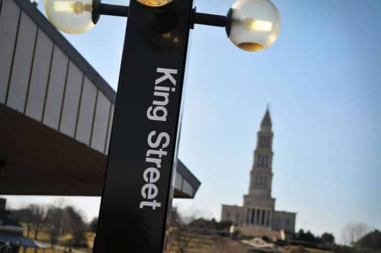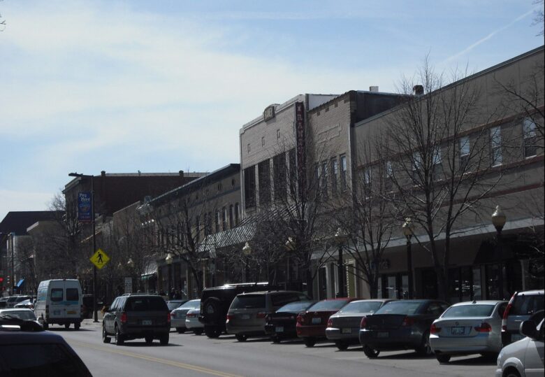 Mass Street, as locals call it, is the main street through downtown Lawrence featuring 100-year-old buildings in the National Register of Historic Places. The city’s founders, who came from Massachusetts, named the side streets after the U.S. States and placed them in the order of joining the Union.