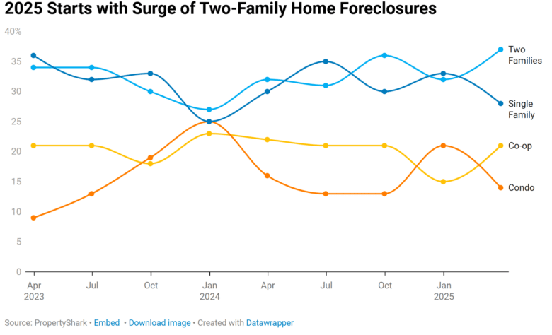 - Two-family homes lead NYC foreclosure sector, surpassing combined co-op and condo filings