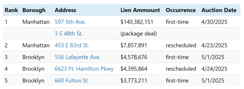 This report also includes data on NYC commercial properties that went into foreclosure in Q1 2025.