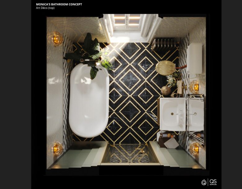 Well, redesigning your bathroom is about ideas – and about being consistent. So to help you imagine how your bathroom might look with a makeover, we’ve pictured Monica’s bathroom in six in-demand interior styles, with examples of the fixtures and fittings you can use to achieve each Friends bathroom look.