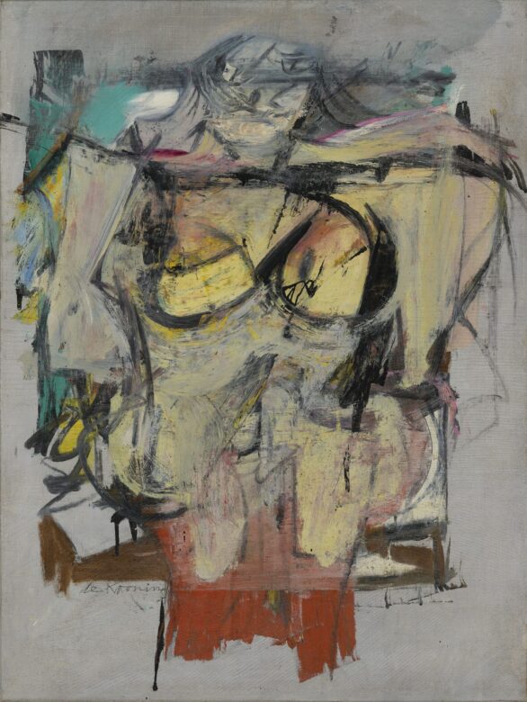 De Kooning’s women were stylistically different from his more figurative work of the 1940s, incorporating harsh lines and expressive brushstrokes. This would later be referred to as “action painting.”