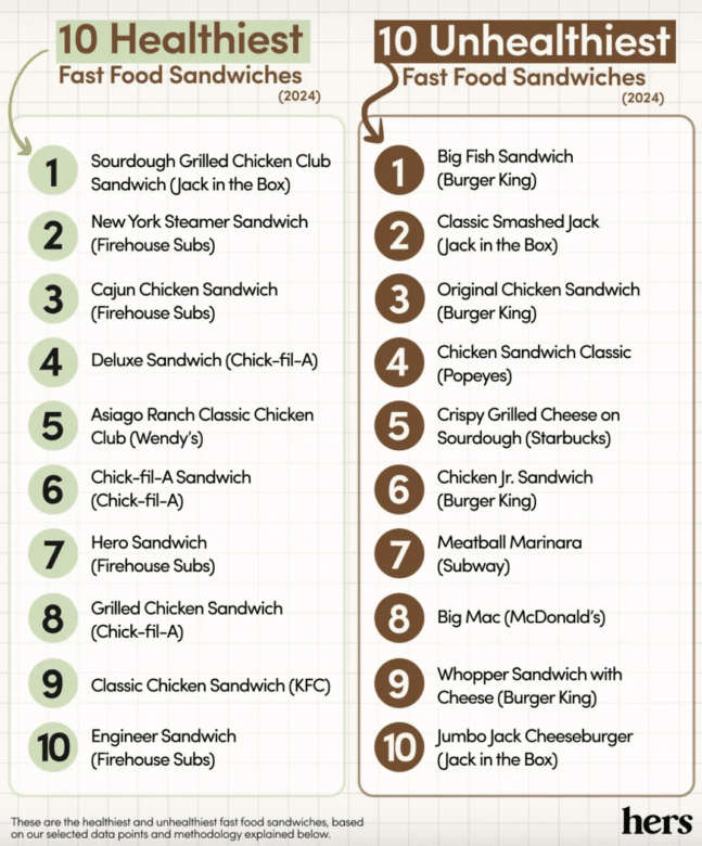 The Top 10 Healthiest (& Unhealthiest) Fast Food Sandwiches in the U.S.