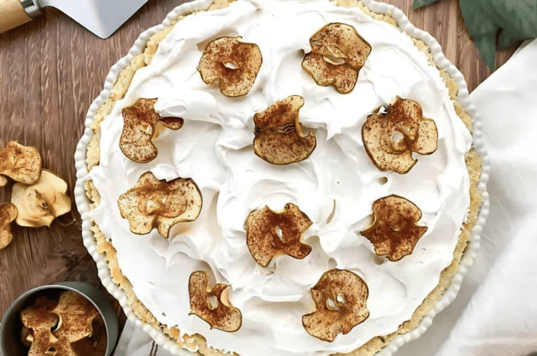 This cinnamon pie is a decadent dessert with a flaky crust and creamy cinnamon filling. Topped with apple cider meringue and apple chips, it’s a unique treat that’s perfect for any fall occasion. For fans of cinnamon and spice desserts, this pie will impress.