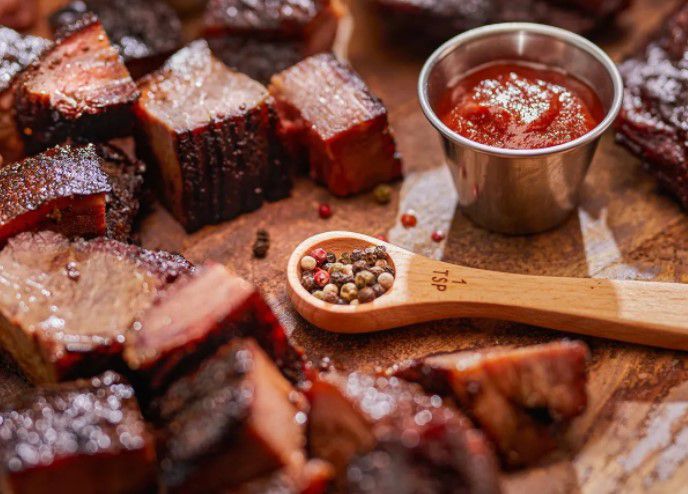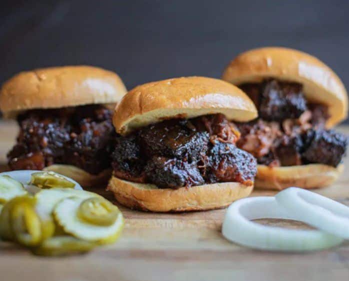 Each cubed piece has a crispy heavy char texture outside and juicy, pink interior plus a smoky aroma and taste. During the smoking process, the fat on the brisket mixes with the smoke. The best burnt ends are sweet, savory, and smoky.