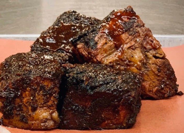 Burnt ends are smoky, juicy, slightly fatty, crispy, a little greasy, and melt in your mouth. They should not be tough or chewy. A quality burnt end — the equivalent of a piece of BBQ gold — has a dark crust, visible smoke ring, and a layer of fat.