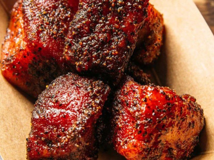 The mom-and-pop BBQ restaurant makes its “farm to smoker” Bacon Burnt Ends with Niman Ranch pork belly that is cured for a day and then smoked for hours.