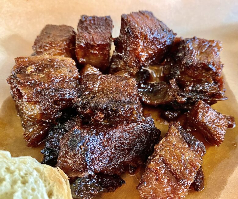 At Arthur Bryant’s Barbecue, these crispy pieces of meat were placed on the counter, so customers could chew on them while they stood in line. This BBQ trash was later deemed BBQ treasure in the 1970s, so these bite-size bits were added to the menu and called burnt ends.