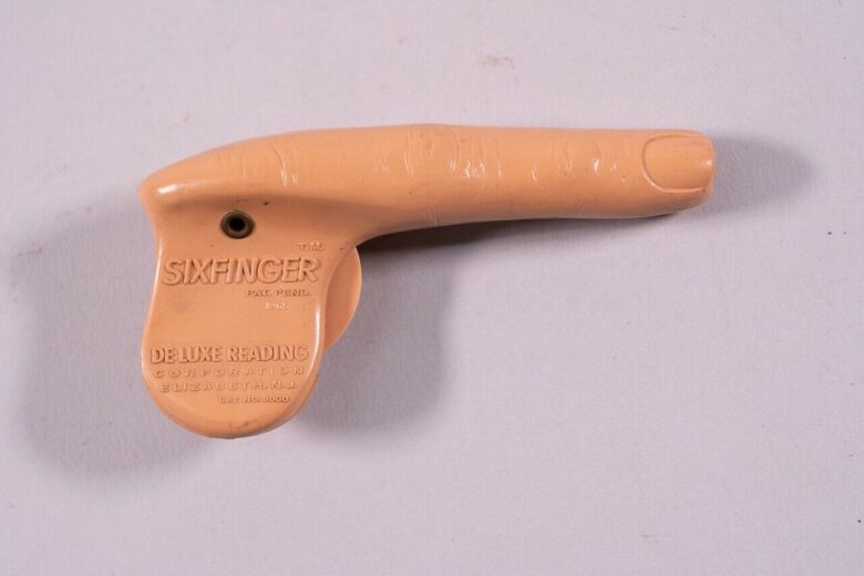 Released in 1965 by Deluxe Reading under their Topper Toys brand, Sixfinger was a fake extra finger that doubled as a multi-functional toy. It could shoot caps, ballpoint pens, and secret messages. The allure of becoming a six-fingered spy was irresistible for many kids, but Sixfinger eventually disappeared mainly because of safety concerns around small projectile toys.