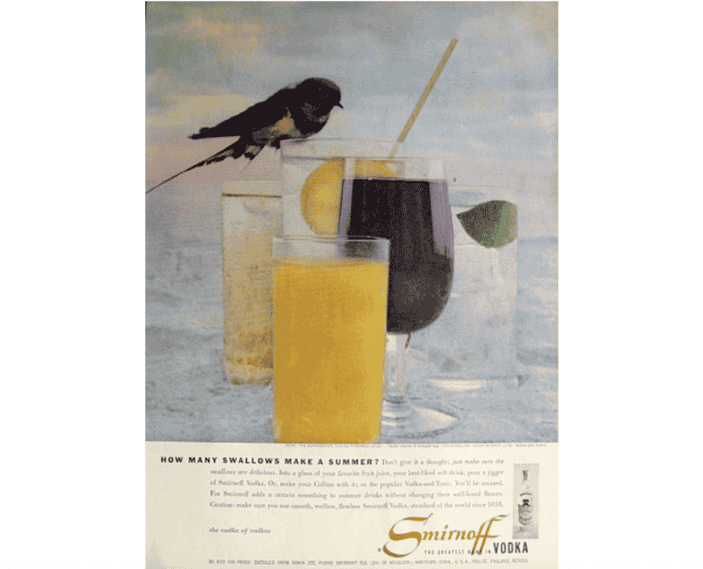 Vodka’s clean and crisp character makes it another perennially popular option for dog day cocktails, and Smirnoff has smartly capitalized on that phenomenon over the years, offering a variety of ads that capture the casual, carefree elements of the season.