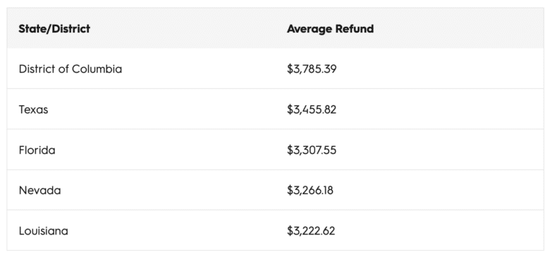 Here are the five states with the lowest average tax refunds in 2023: