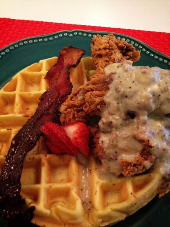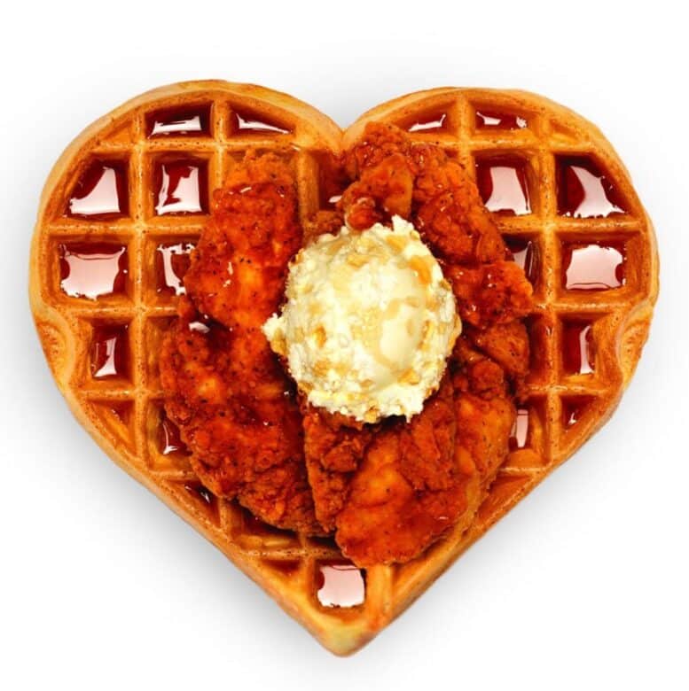 The concept of combining chicken and waffles has been around since the 1600s when early versions of waffles were being topped with pulled chicken and gravy by home cooks in Pennsylvania Dutch country. But it wasn’t until 1938 that the soul-food-inspired concept of fried chicken and waffles first appeared in the Wells Supper Club in Harlem, New York.