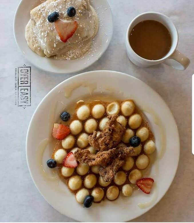 Pancakes & Waffles BLD packs some of Oahu’s most delicious chicken and waffles. Its signature dish is a chicken and waffle platter topped off with savory honey butter, which makes the restaurant stand out in the state and national waffle scenes. And they also offer brown and country gravy.