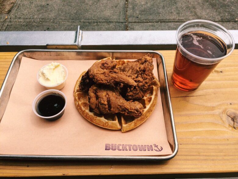 Bucktown keeps Providence full of eclectic, down-home fare, but the restaurant’s chicken and waffles is one of its signature dishes. Bucktown takes a no-frills approach to its presentation , serving three pieces of chicken atop a Belgian waffle with some syrup. But this simplicity hasn’t dampened locals’ enthusiasm for ordering it.