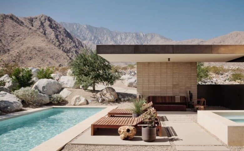 The minimalist contemporary home was designed by LA-based architectural firm Woods + Dangaran and sits in the hillside enclave of Desert Palisades.