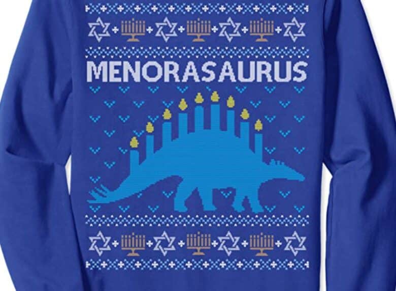 Christmas isn’t the only holiday in December! Show off your love for latkes with this ugly Hanukkah sweater!
