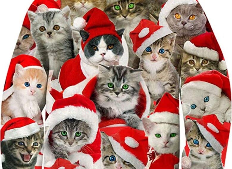 Ah, cats again. We couldn’t forget about the kids in your life, though. Plus, we thought this cat wreath with a real bow would look great with most of the adult-sized sweaters on this list!