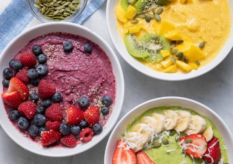 These beverage-inspired healthy smoothie bowls are refreshing and nutritious breakfasts or snacks with endless variations. Make them with any frozen fruit!