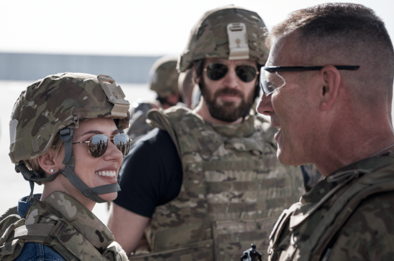 Actress Scarlett Johansson has done two USO tours: one in 2008 and another in 2016. During the 2016 USO Chairman’s Holiday Tour, Johansson visited troops with fellow “Avengors” actor Chris Evans. She has visited nearly 6,000 service members altogether, among Kuwait, Turkey, Qatar and Afghanistan.
