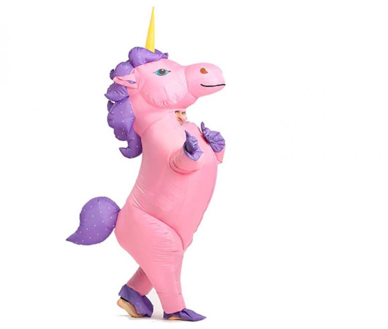 When searching for the right costume, just how whimsical are you feeling on a scale of 100 – 1000? If the answer is YES, this inflatable unicorn costume is for you. Price: $45.99