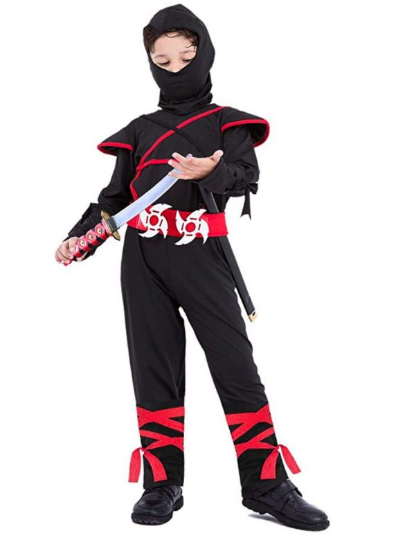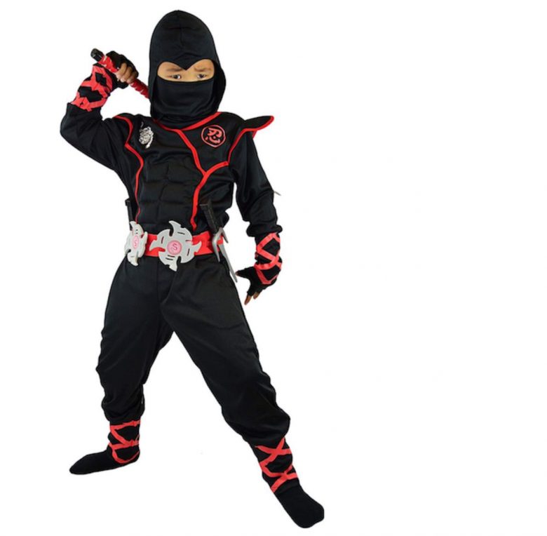 Look at this super-tough mini ninja! This full and fun look comes with built-in muscles, throwing stars, and a katana sword! Price $24.99 – $29.99