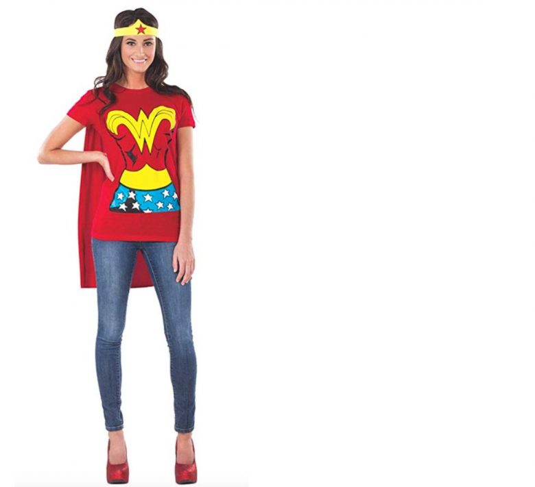 Busy parents and lazy costume party attendees can get most of the wonder with none of the effort with this Wonder Woman T-shirt costume. Comes with cape and headband. Price $14.99 – $40.16