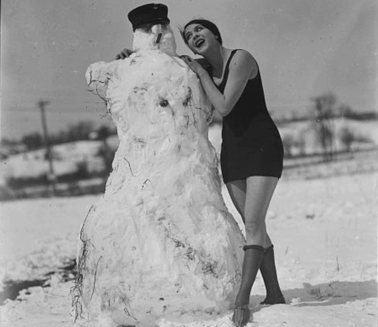Fritzi Ridgeway, Vaudeville Star making a snowman.