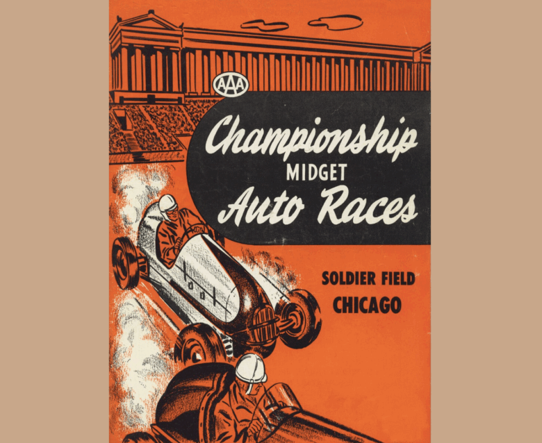 Championship midget auto races 1940s illustrated poster.