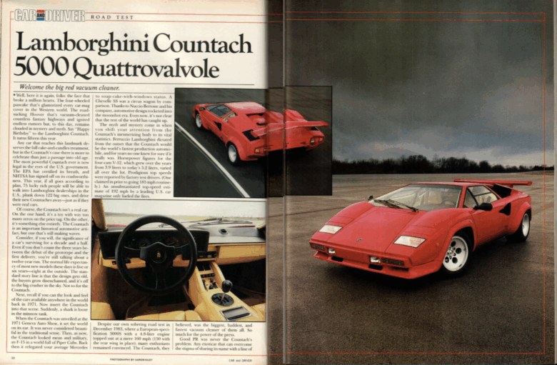 Lamborghini poster in Car And Driver magazine 1986.