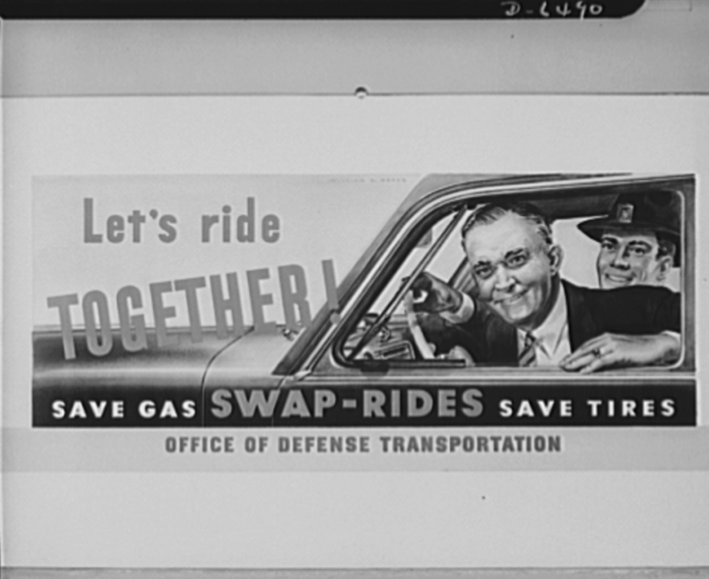Car sharing illustrated poster, 1940 – 1946.