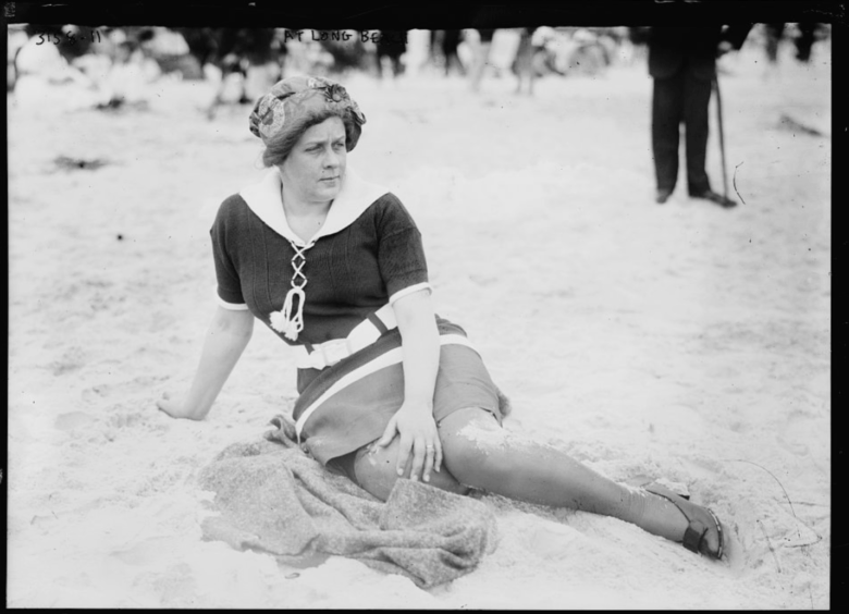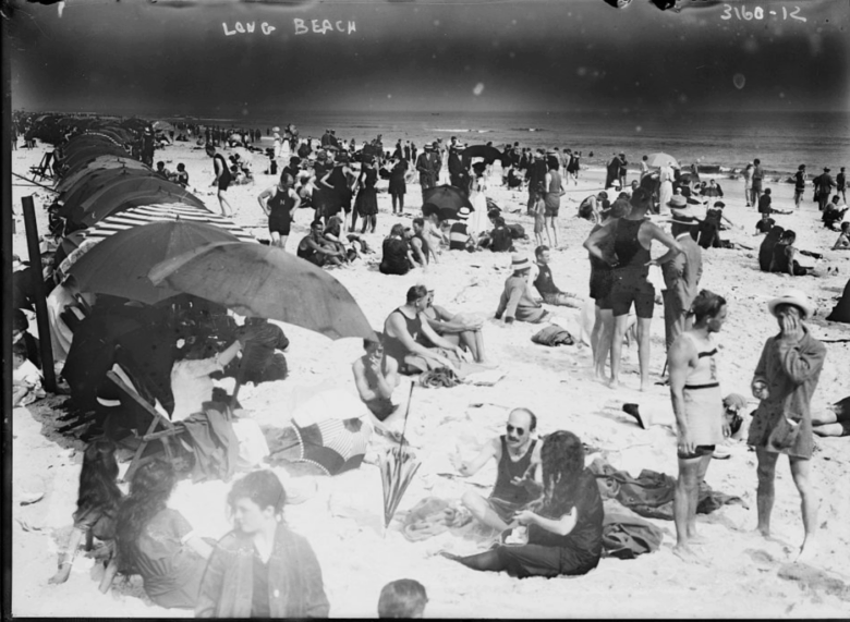 Busy beach day at Long beach, around 1915.
