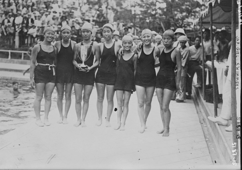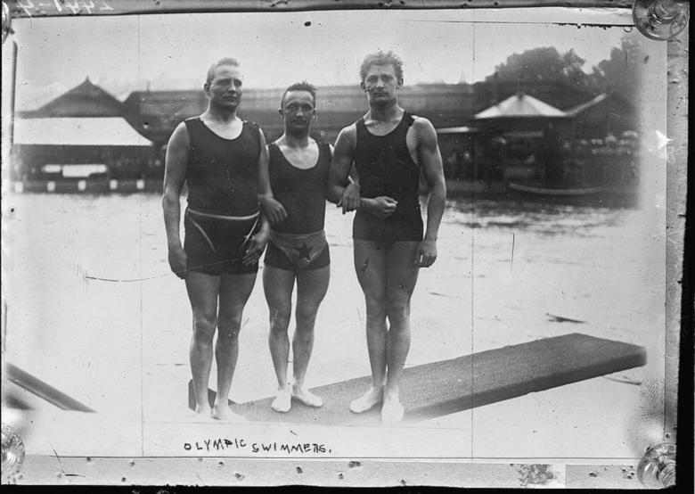 Swimmers from the 5th Olympic Games, held in Stockholm, Sweden, in 1912.