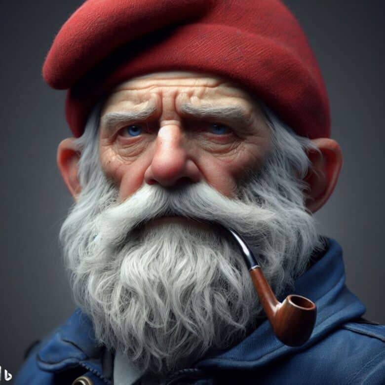 Whoa, would you take a gander at Papa Smurf rocking that urban woodsman vibe? Seems like he’s traded the enchanted forest for a loft in Brooklyn and is all set to be the trendiest character at the local organic smurfmarket. With a beard so lush it’s practically a wildlife refuge and a beret that’s no doubt hand-stitched from the finest smurfberry threads, he’s serving up old-school wisdom with new-age chic. And that pipe? Clearly, Papa’s been puffing on the pipe of sophistication. You can almost hear him saying, “Back in my day, we made our own artisanal blue dye.