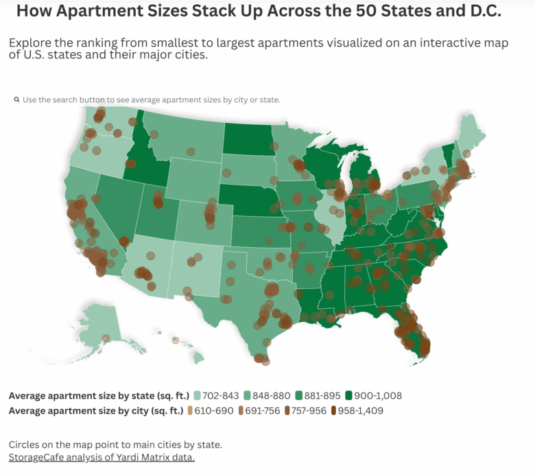 Check out how states and their main cities fare in terms of average apartment sizes: