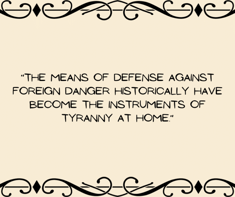 James Madison, known as the “Father of the Constitution,” expressed this cautionary perspective on the potential misuse of military power. This quote encapsulates Madison’s deep concern for maintaining checks and balances in government to avoid the concentration of power.