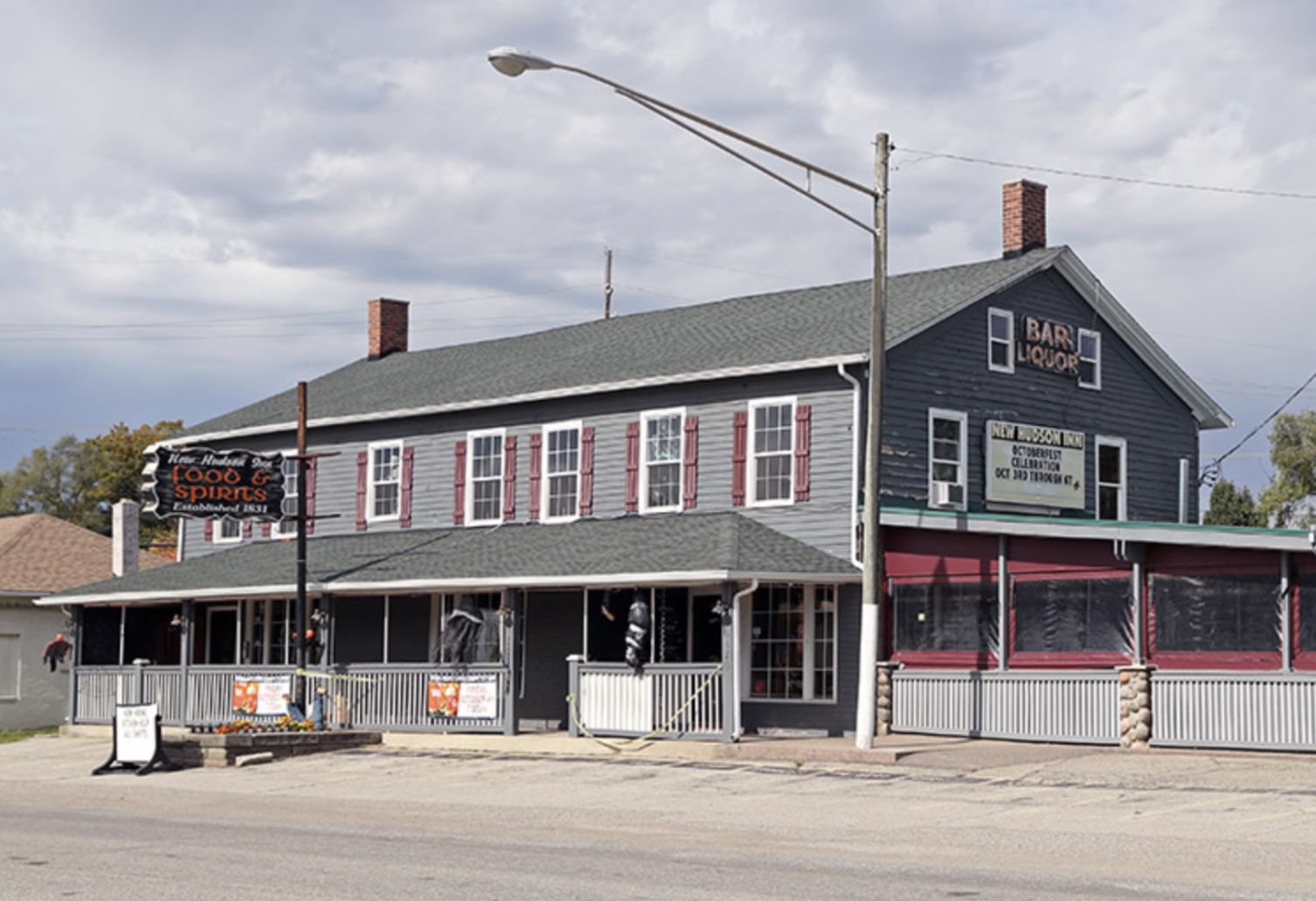 The New Hudson Inn was founded in 1831 and, according to its website, was “solidly built out of 18” sewn timbers and hardwood held together with wooden pegs.”