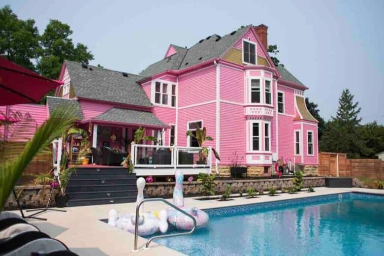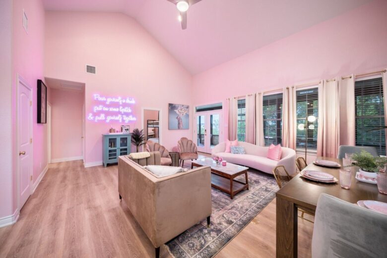 If the aesthetic speaks to you and you’re looking for a late summer holiday spot (or want to plan for next year), Vrbo has several fun pink rental properties all around the U.S. that have a total Barbie vibe.