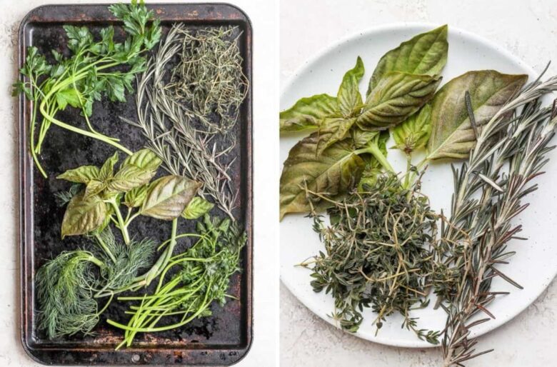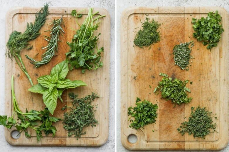 - First, rinse the herbs and pat dry with a paper towel.