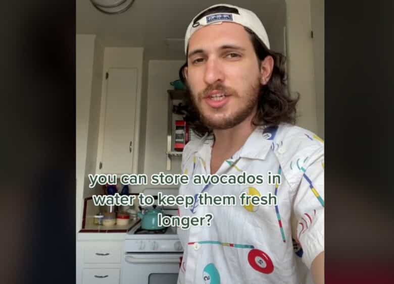 Or you can keep a cut avocado fresh and not-brown by storing the unused half in a little bowl of water.
